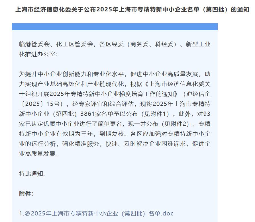 Recently, the Shanghai Municipal Commission of Economy and Informatization officially released the "2025 List of Shanghai Specialized and Sophisticated SMEs (Fourth Batch)". VKEY-BIO (Shanghai) Biotechnology Co., Ltd. was successfully selected and honored with the title "Shanghai Specialized and Sophisticated SME" due to its outstanding innovative capabilities and professional development level in the field of high-end domestic reagent R&D. This represents another authoritative recognition for VKEY-BIO, following honors such as "High-Tech Enterprise", "Innovative SME", and "Technology-based SME", marking a new stage in the company's development.
